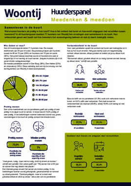 Hoe ervaren huurders het samenleven in hun buurt? Wat gaat goed, waar lopen zij tegenaan en welke rol zien zij daarin voor Woontij? In dit tweede huurderspanel deelden 71 Woontij-huurders hun ervaringen over contact met buren, omgaan met verschillen en het gevoel van verbondenheid in de buurt.